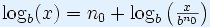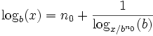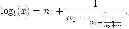 Алгоритъм Алгоритъм за пресмятане на logb(x), ако b и x са рационални числа и Инициализация Ако n0 е най-голямото естествено число, такова че ![]() тогава, Стъпка ![]() Формула Ако съпката се приложи рекурсивно, се получава безкрайната дроб: ![]() На фиг. 1 можете да видите първите 2 приближения пресметнати по този алгоритъм, т.е. Фиг. 1