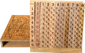На фиг. 2 са показани така-наречените "пръчици на Непер". С тяхна помощ, умножението и деленето се свеждат до събиране и изваждане. Непер не изполвал основата на логаритъма, в смисъла, в които я разбираме