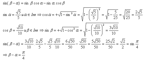 А) $\beta - \alpha = \frac{\pi}{4}$, ако $sin \alpha = \frac{\sqrt{5}}{5}$, ако α