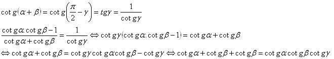 B) cotgα + cotgβ + cotgβ = cotgα.cotgβ.cotgγ.