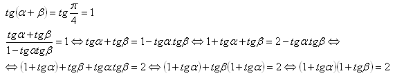 то (1 + tgα)(1 + tgβ) = 2.