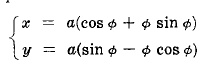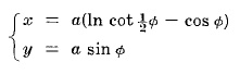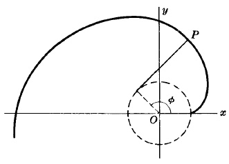 ТОва е крива описана чрез крайната точка P на нишка, която се развива от окръжност с радиус a докато стане права.