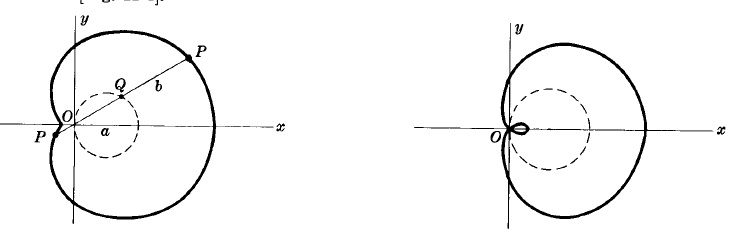 Кривата е като на фигурите по-долу сътветно когато b > a или съответно b < a. Ако b = a, кривата е кардиоид.
