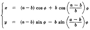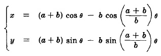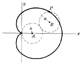 Това е крива описана от точка Р от кръг с радиус b като се движи по външността на окръжност с радиус а.