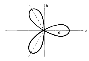 Уравнението r = acos3θ е подобна на крива получена чрез въртене на кривата по посока обратна на часовниковата стрелка на 30o или π/6 радиани.