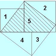 На рисунката квадратите, построени на катетите са стъпаловидно разположени един спрямо друг. Тази фигура , която се среща в доказателствата, датира не по-късно от ІХ в.пр.хр., индийците са я наричали “стола на булката”. Начина на построяването на квадрата от страни, равен на хипотенузата е ясен от чертежа. Общата част на двата квадрата, построени на катетите и квадрата, построен на хипотенузата – неправилно защтрихования триъгълник 5. Ако присъединим към него триъгълници 1 и 2, ще получим двата квадрата построени на катетите, ако заменим триъгълниците 1 и 2 с равните на тях тригълници 3 и 4, то ще получим квадрата, построен на хипотенузата.